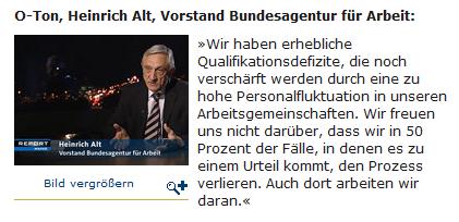Wie katastrophal die Bediensteten in den Behörden arbeiten, bestätigte sogar der Vorstand der 'Agentur für Arbeit', Heinrich Alt im ARD-Magazin 'Report'.