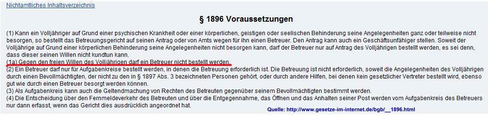 Wie ich erst später erfuhr, gibt es eine klare Rechtssprechung, wonach der Betroffene einer Betreuung ausdrücklich zustimmen muss - außer er kann seinen Willen nicht frei bestimmen. Wie so vieles in meinem Fall, wurde auch dieses Gesetz mit Füßen getreten.